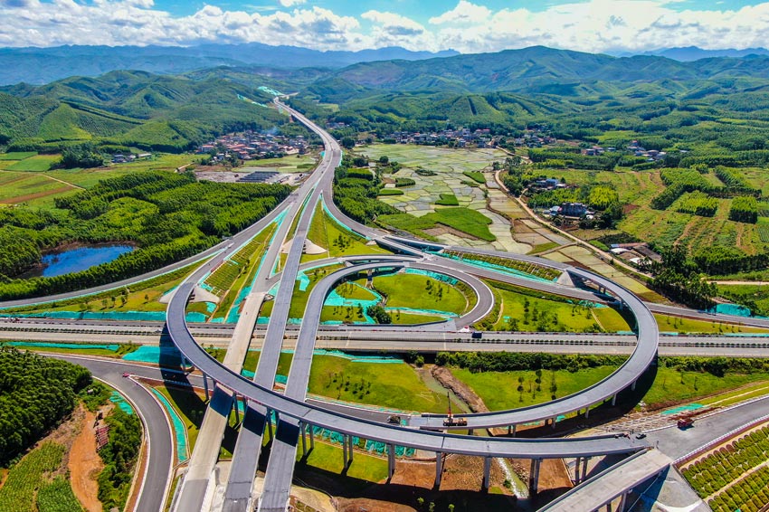 航拍平武高速路的互通立交橋。來賓市委宣傳部供圖