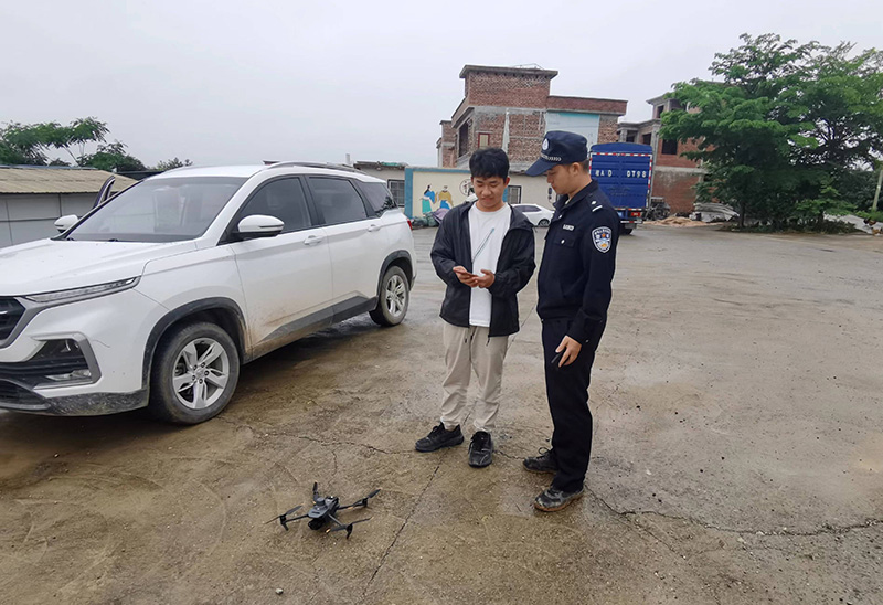 鐵警向擁有無(wú)人機(jī)的村民講解安全飛行知識(shí)。受訪者供圖