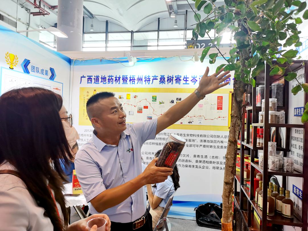 工作人員在展會(huì)現(xiàn)場(chǎng)介紹桑寄生。陸靜攝