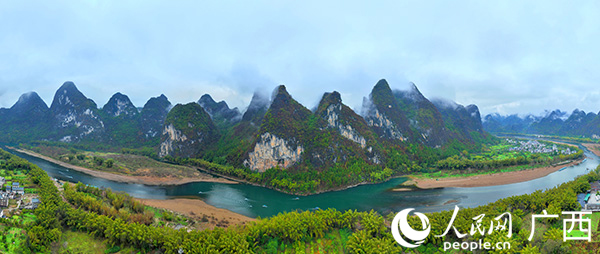 雨中的漓江風(fēng)景美如畫(huà)卷。人民網(wǎng) 付華周攝