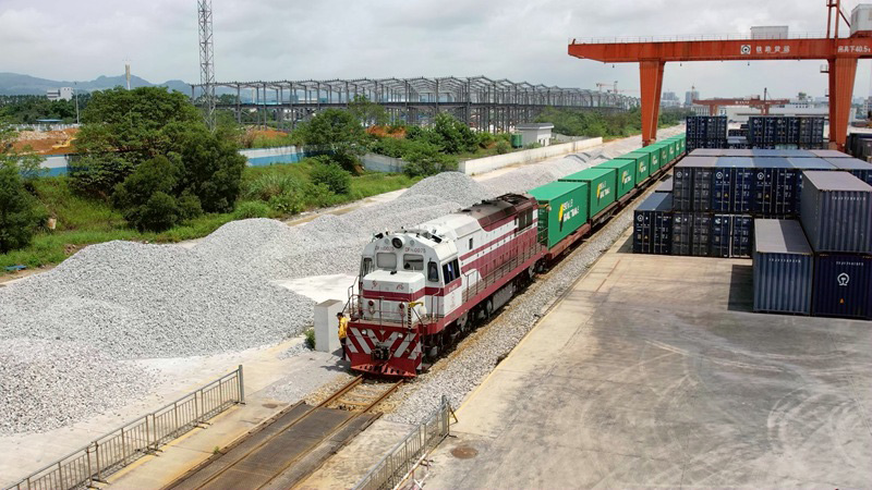 中歐班列即將駛出柳州鐵路港。閆坤攝