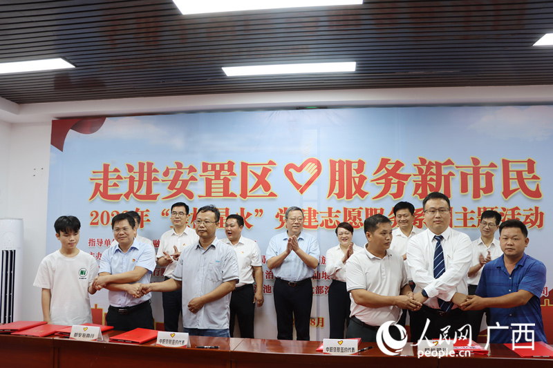 人民網(wǎng)都安8月17日電 (何寧)8月15日,以“走進安置區(qū) 服務新市民”為主題的2023年“金桂星火”黨建志愿服務系列主題活動在河池市都安瑤族自治縣澄江鎮(zhèn)仙瑯社區(qū)舉行,活動包含中等職業(yè)教育助學類貸款簽約儀式、新市民金融服務宣傳等內(nèi)容。