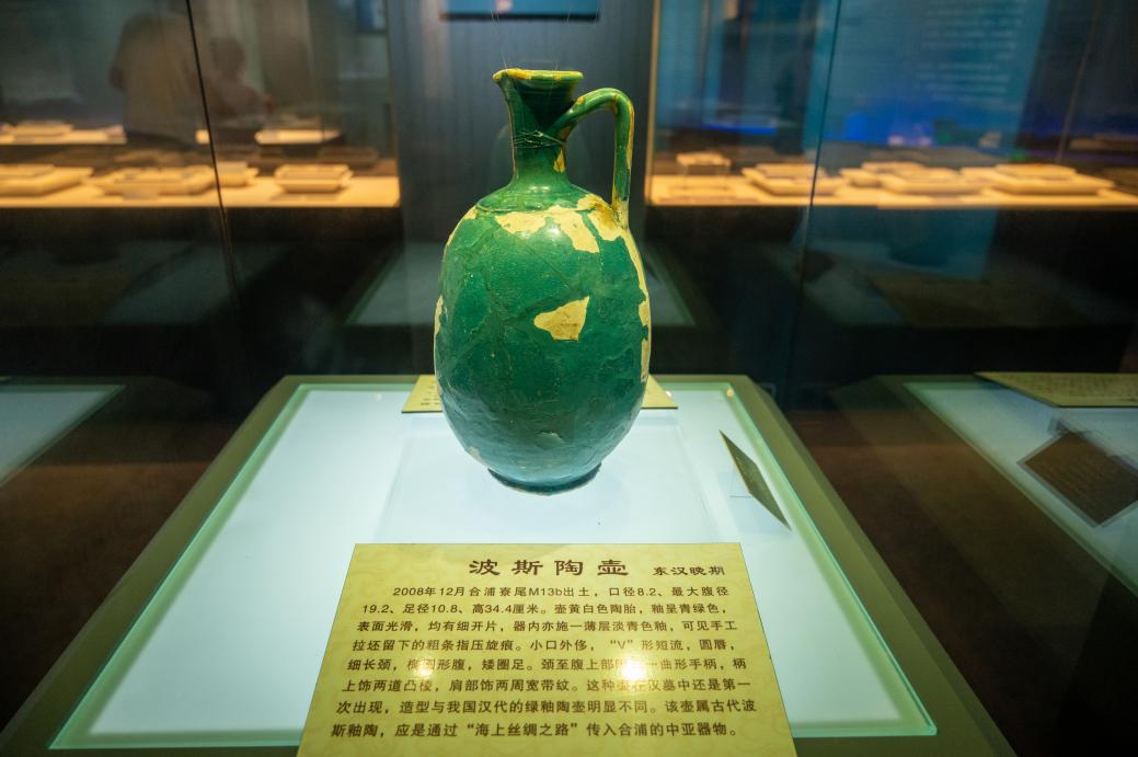 館內(nèi),一件青綠色的陶壺格外耀眼,這個“鎮(zhèn)館之寶”曾叫青綠釉陶壺,后因其有“波斯血統(tǒng)”而得名“波斯陶壺”?!斑@是迄今為止我國出土年代最早,也是目前唯一一件東漢時期的波斯陶壺,是印證漢代中國與波斯往來的重要物證?!备别^長林娟說,“合浦漢代文化博物館館藏文物共5208件(套),其中,國家一級文物21件,二級文物201件?!?/p>