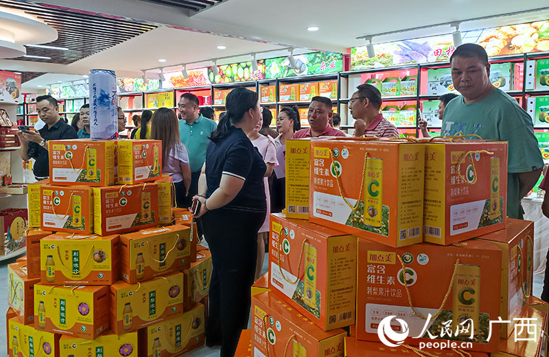 人民網(wǎng)南寧9月3日電 (何寧)樂業(yè)紅心獼猴桃、清爽刺梨汁、香軟芒果干、爽脆八渡筍……9月2日,“百香百色”鄉(xiāng)村振興產(chǎn)品展銷館暨樂業(yè)生態(tài)食材體驗(yàn)中心在南寧開業(yè)。展館內(nèi)來自百色市的特色產(chǎn)品讓人目不暇接,慕名前來的市民們一邊品嘗地道的百色美食,一邊感受百色鄉(xiāng)村振興的成果。
