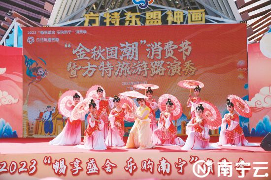 9月23日,由南寧市人民政府主辦的“金秋國潮”消費(fèi)節(jié)暨方特旅游路演秀活動在方特東盟神畫舉行?,F(xiàn)場不僅有精彩的東南亞歌舞表演,還推薦了南寧本地好物和秋冬旅游產(chǎn)品,在“金九銀十”消費(fèi)旺季期間,為市民提供吃、喝、玩、樂、購全方面優(yōu)惠信息和福利。