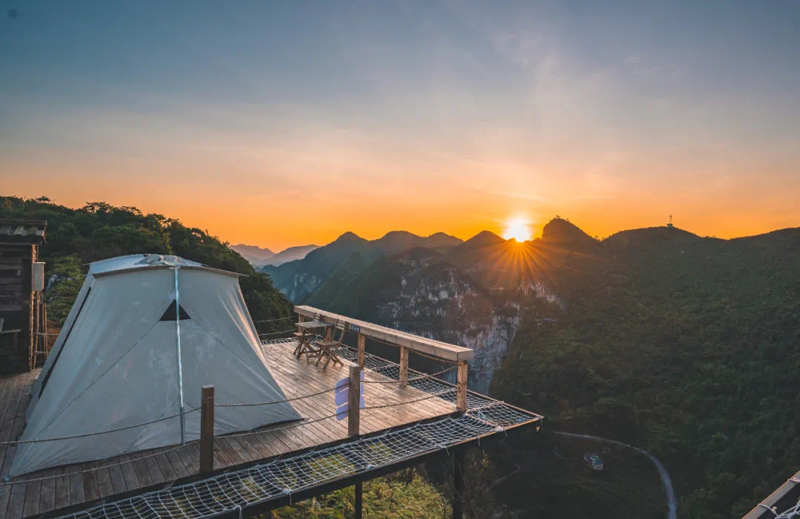 大石圍天坑懸崖帳篷露營地。樂業(yè)縣委宣傳部供圖