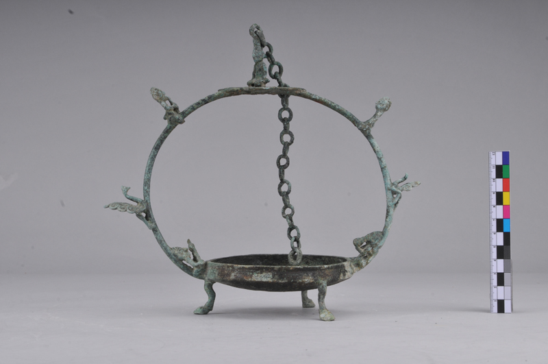 活鏈提梁銅燈。 合浦漢代文化博物館供圖