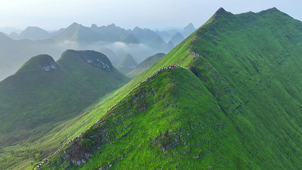 中秋國慶假期以來,天等縣的劍龍山成為新的網(wǎng)紅景點,區(qū)內外各地網(wǎng)友接踵而至,拍下海量視頻、圖片上傳各個平臺賬號,引發(fā)更多的網(wǎng)友關注和前來攀登。據(jù)統(tǒng)計,假期共有3萬多人前來登山打卡,假期之后,每天仍吸引大量的游客。