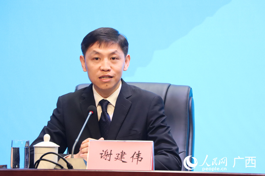 謝建偉介紹開(kāi)幕式志愿者隊(duì)伍組織工作情況。人民網(wǎng)記者 朱曉玲攝