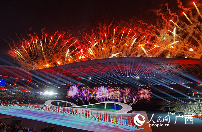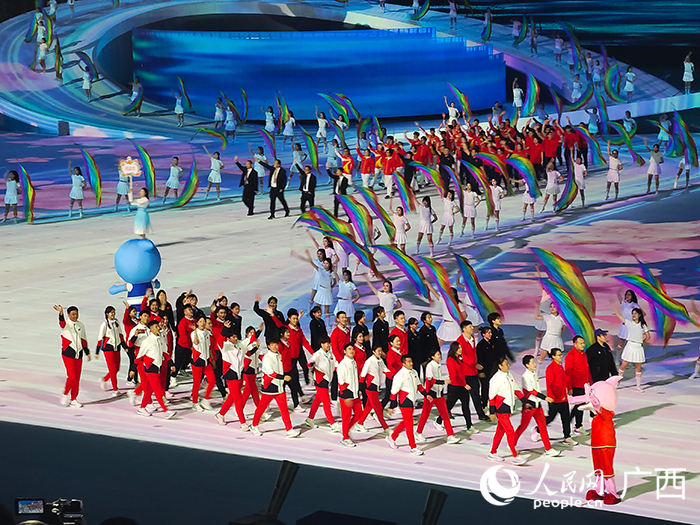 人民網(wǎng)南寧11月5日電 (記者沈泉池)11月5日晚上,第一屆全國(guó)學(xué)生(青年)運(yùn)動(dòng)會(huì)開幕式在廣西體育中心體育場(chǎng)舉行。