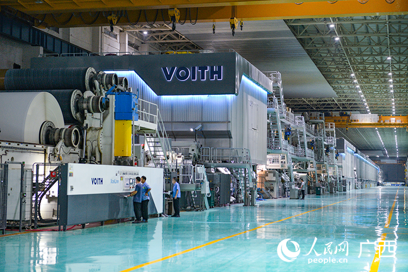 廣西太陽(yáng)紙業(yè)北?;氐纳a(chǎn)線。人民網(wǎng) 雷琦竣攝