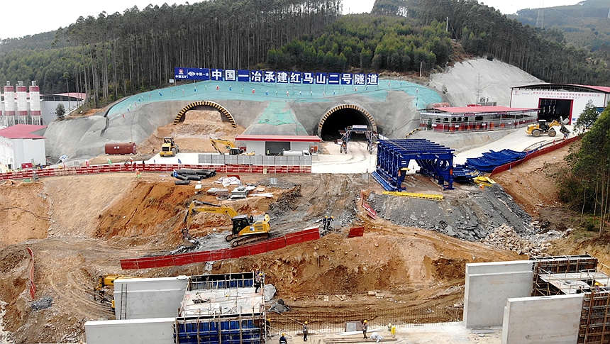 羅鹿高速公路項(xiàng)目巖頭嶺隧道建設(shè)現(xiàn)場。中國一冶供圖