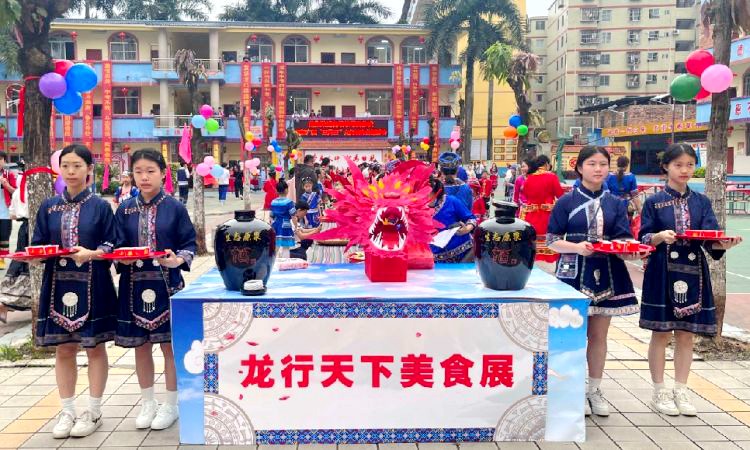 活動(dòng)現(xiàn)場(chǎng),師生表演民族舞蹈《壯家敬酒歌》《相親相愛》、山歌聯(lián)唱《教你說壯語(yǔ)》《廣西歡迎您》《大新敬酒歌》等節(jié)目,以及拋繡球、打陀螺等民族體育項(xiàng)目。同時(shí),舉辦民族特色長(zhǎng)桌美食展。