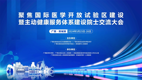 5月25日至26日,值防城港國(guó)際醫(yī)學(xué)開放試驗(yàn)區(qū)建設(shè)五周年、廣西醫(yī)學(xué)科學(xué)院成立三周年之際,由廣西壯族自治區(qū)衛(wèi)生健康委員會(huì)、廣西壯族自治區(qū)科學(xué)技術(shù)廳、廣西壯族自治區(qū)科學(xué)技術(shù)協(xié)會(huì)、防城港市人民政府聯(lián)合主辦,廣西醫(yī)學(xué)科學(xué)院·廣西壯族自治區(qū)人民醫(yī)院、防城港市衛(wèi)生健康委員會(huì)、防城港國(guó)際醫(yī)學(xué)開放試驗(yàn)區(qū)工作辦公室、廣西壯族自治區(qū)人民醫(yī)院防城港醫(yī)院·防城港市第一人民醫(yī)院共同承辦的聚焦國(guó)際醫(yī)學(xué)開放試驗(yàn)區(qū)建設(shè)暨主動(dòng)健康服務(wù)體系建設(shè)院士交流大會(huì),將在防城港市盛大開幕。