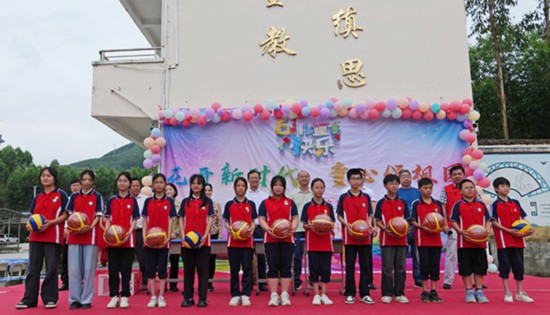 隨后,慰問組給孩子們發(fā)放了書包、彩筆、籃球等學習用品和體育用品,并開展了地質科普進校園活動。
