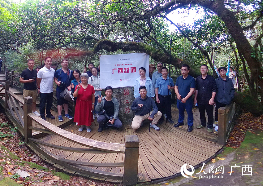 報(bào)道團(tuán)成員在漓江源合影。人民網(wǎng)記者 嚴(yán)立政攝