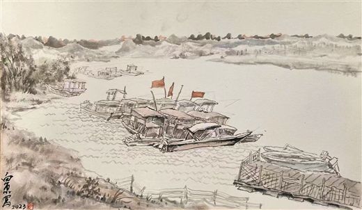 “平陸運(yùn)河是西部陸海新通道的重點(diǎn)建設(shè)工程之一,是廣西乃至我國西南地區(qū)通江達(dá)海、向海圖強(qiáng)的關(guān)鍵項(xiàng)目,將這一重要工程用美術(shù)作品表達(dá)和創(chuàng)作是藝術(shù)工作者的職責(zé)所在?!睆V西政協(xié)書畫院院長、廣西美術(shù)館館長龍建輝在施工現(xiàn)場分別創(chuàng)作了《筑夢平陸運(yùn)河建設(shè)交響曲》等10多幅作品。他表示,藝術(shù)家要堅(jiān)持與時代同步伐、以人民為中心、以精品奉獻(xiàn)人民,繁榮文藝創(chuàng)作,努力推出更多增強(qiáng)人民精神力量的優(yōu)秀藝術(shù)作品。