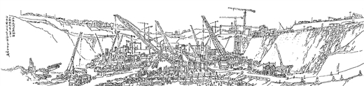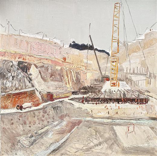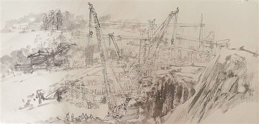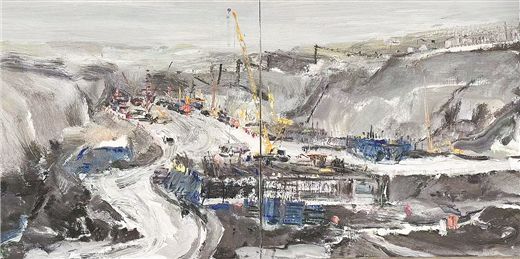 中國畫《平陸運(yùn)河·企石樞紐工程中期》 蔡智/作