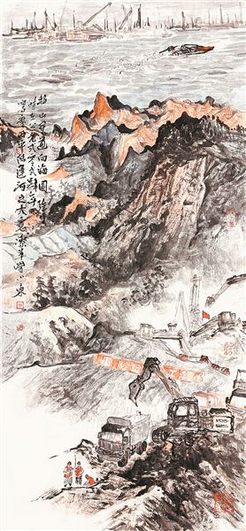 中國畫《移山開道向海圖強(qiáng)》 伍小東/作