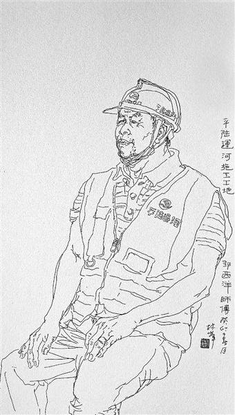 速寫《平陸運(yùn)河施工工地 鄒師傅》 林峰/作