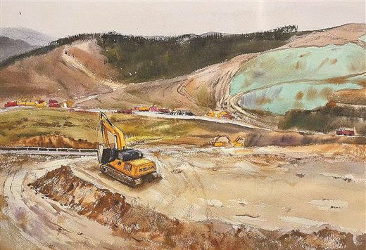 有的畫作是對施工區(qū)域各處自然環(huán)境的關(guān)切,展現(xiàn)人類造物與自然環(huán)境和諧共生、共同繁榮的景象。