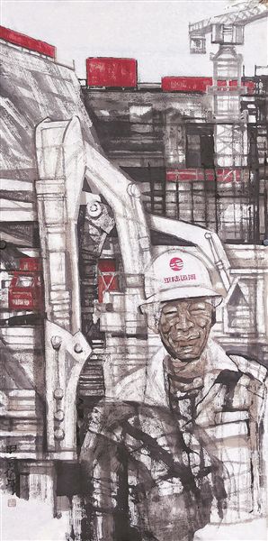 有的畫作聚焦在工程建設(shè)者身上,用細(xì)膩的筆觸勾勒出勞動人民樸實(shí)的面容和堅(jiān)毅的神態(tài);