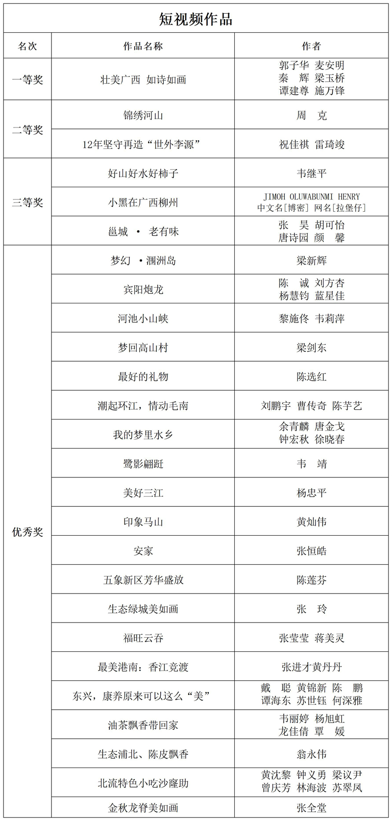 2024年“美麗廣西”短視頻(攝影)大賽優(yōu)秀作品和優(yōu)秀組織單位名單公示
