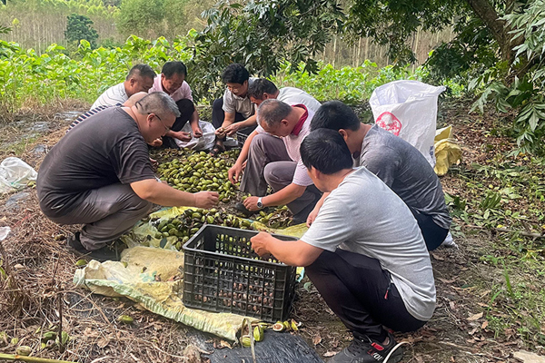 專家組一行先后來到環(huán)江毛南族自治縣馴樂苗族鄉(xiāng)北山村、思恩鎮(zhèn)四合村薄殼山核桃矮化密植結(jié)果示范基地實(shí)地考察,并采收果實(shí)用于科研實(shí)驗(yàn)。專家組通過實(shí)地走訪當(dāng)?shù)厝罕姾同F(xiàn)場聽取有關(guān)負(fù)責(zé)人介紹等方式,全面深入了解河池市發(fā)展薄殼山核桃產(chǎn)業(yè)的基本情況、措施和下一步計(jì)劃等,并就優(yōu)新品種選育、施肥管護(hù)、修剪、病蟲害防控存在的問題,提出針對性技術(shù)措施和工作建議。