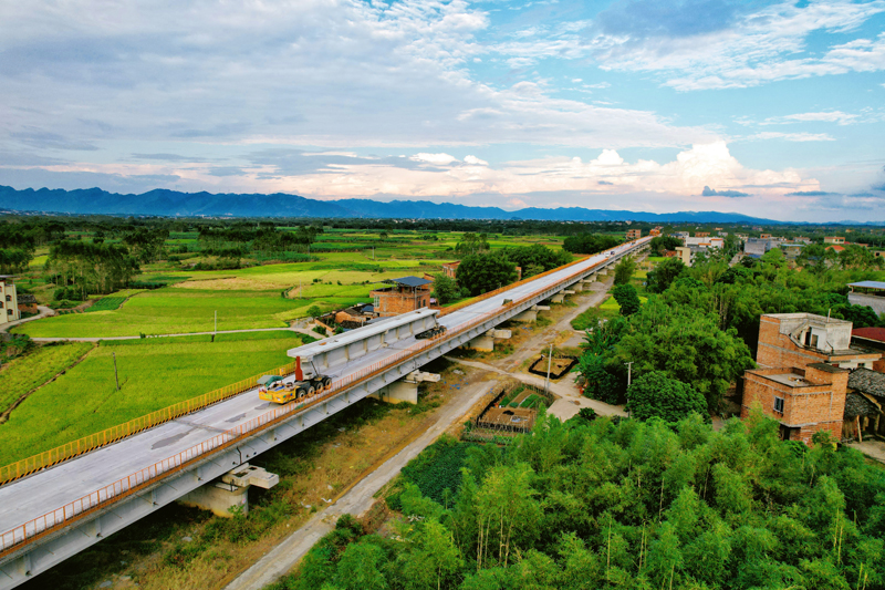 柳梧鐵路田寮跨梧柳高速平南連接線特大橋位于貴港市平南縣東華鎮(zhèn),全長4730.92米,目前已完成主體工程施工。