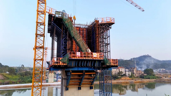 為了實現(xiàn)首個0號塊的順利澆筑,平陸運河建設管理團隊精心籌備,從施工方案的編制、論證及審批,到原材料進場的管控,再到專項施工安全技術交底進行層層把關、精益求精。通過優(yōu)化完善模板縱向坡度以及采用預埋爬錐,克服了0號塊支架搭設高度高、橋梁縱坡和支架搭設大等技術難題,為后續(xù)同類型橋梁施工積累了寶貴經(jīng)驗,也為大橋順利建成奠定了堅實基礎。