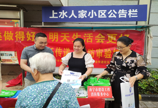 為弘揚(yáng)“奉獻(xiàn)、友愛、互助、進(jìn)步”的志愿精神,大力培育和踐行社會(huì)主義核心價(jià)值觀,10月15日上午,南寧市建設(shè)工程消防服務(wù)中心黨支部聯(lián)合盤古社區(qū)黨支部、廣西大正建設(shè)有限公司黨支部和廣西聯(lián)云項(xiàng)目管理有限公司黨支部到上水人家小區(qū)開展結(jié)對(duì)共建志愿服務(wù)活動(dòng)暨“安全責(zé)任傳遞 消防審驗(yàn)護(hù)航”政策宣傳進(jìn)社區(qū)活動(dòng)。