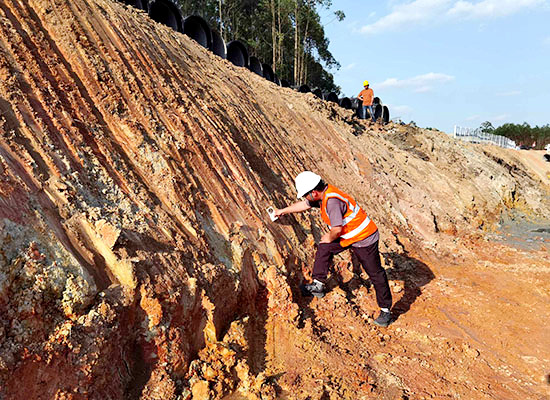 地質(zhì)設(shè)代人員在環(huán)北廣西工程龍崗新區(qū)支線管槽開挖基坑開展工作。何志浩攝