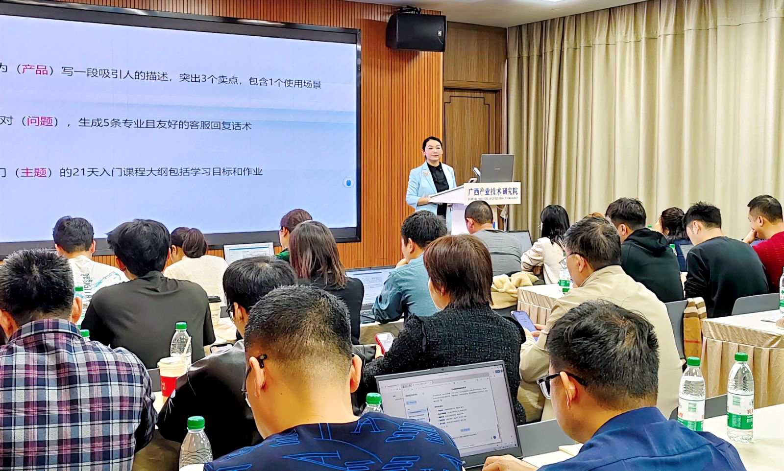 該所作為廣西人工智能產業(yè)創(chuàng)新的重要平臺和廣西數字素養(yǎng)培訓基地,本次培訓精心設計了“理論+場景+實操”三維課程體系,聚焦DeepSeek大模型技術應用,通過行業(yè)趨勢解析、典型場景拆解和分組實戰(zhàn)演練,系統(tǒng)傳授AI工具嵌入業(yè)務流程的方法論。培訓現(xiàn)場配備專業(yè)導師團隊,采用“案例演示—任務驅動—成果復盤”教學模式,確保學員掌握從需求分析到方案落地的全流程技術能力。