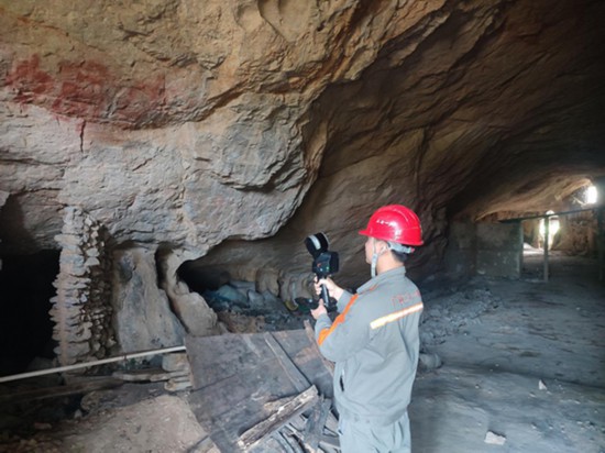 技術(shù)人員手持激光雷達在溶洞內(nèi)進行測繪工作