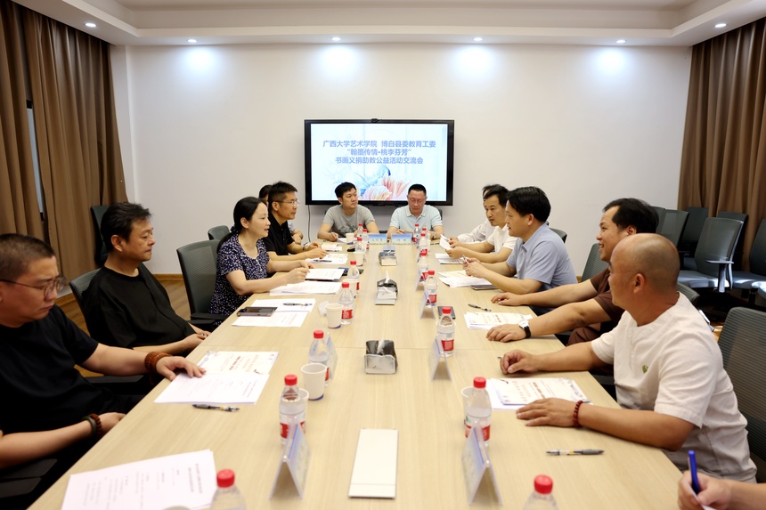 博白縣委常委、宣傳部部長沈俊雨帶隊到廣西大學藝術學院開展“翰墨傳情·桃李芬芳”書畫作品義捐助教公益活動約稿工作