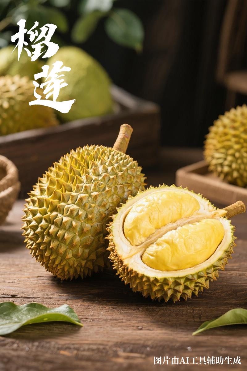 榴蓮被譽(yù)為“水果之王”,果實(shí)呈橢圓形或圓形,表面布滿堅(jiān)硬的尖刺,果肉金黃,口感柔軟香甜、富有層次感,帶有獨(dú)特濃烈的氣味。榴蓮原產(chǎn)于馬來(lái)西亞和印度尼西亞的邊境地區(qū),如今在泰國(guó)、越南、菲律賓等地均有廣泛種植。在東盟國(guó)家,榴蓮不僅是人們喜愛(ài)的水果,也是重要的農(nóng)產(chǎn)品和出口商品。通過(guò)貿(mào)易往來(lái),榴蓮深受中國(guó)消費(fèi)者歡迎,成為連接?xùn)|盟與中國(guó)的“甜蜜紐帶”。