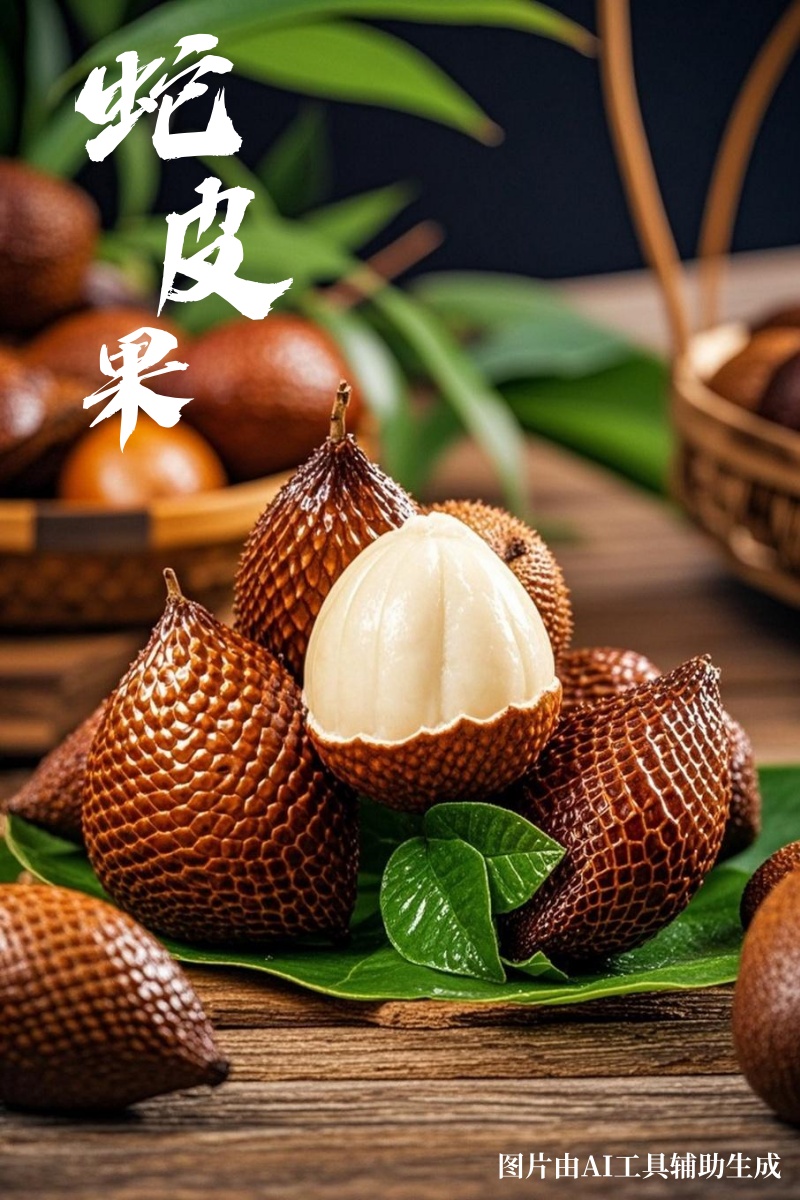 蛇皮果,最顯著的特征是紅褐色鱗片狀果皮,形似蛇鱗而得名,主產(chǎn)區(qū)集中在印度尼西亞和泰國(guó)。果肉呈乳白色或淡黃色,質(zhì)地脆嫩多汁,口感酸甜交織,帶有類似菠蘿和荔枝的馥郁香氣。蛇皮果富含鉀、鐵等礦物質(zhì)及維生素,具有“記憶之果”的美譽(yù),既常被鮮食,也用于制作蜜餞或沙拉,是東南亞市場(chǎng)上極具辨識(shí)度的特色水果之一。