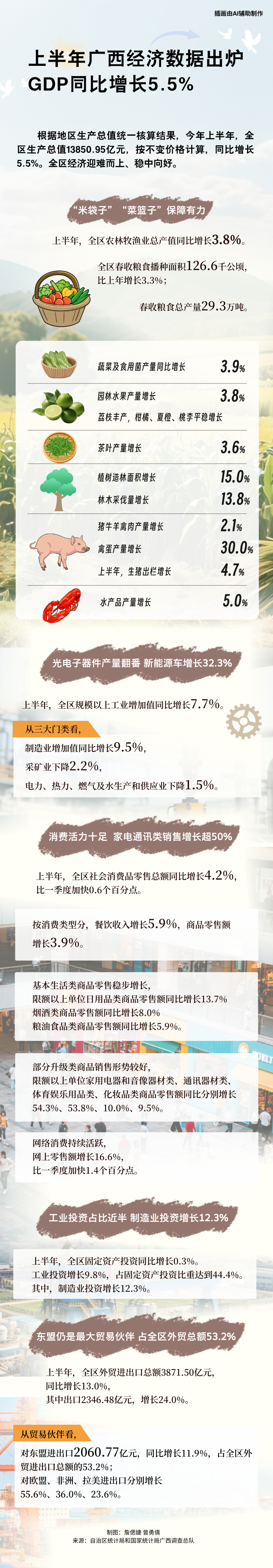 上半年廣西經濟數(shù)據(jù)出爐,GDP同比增長5.5%