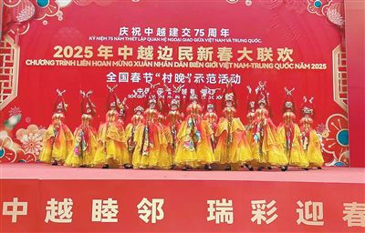 2025年中越邊民新春大聯(lián)歡暨全國春節(jié)“村晚”示范活動在那坡縣平孟鎮(zhèn)舉辦,中越邊民同臺演出。陸春蘭攝