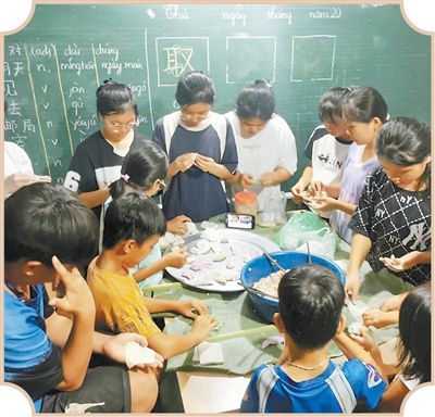 在閉氏映的中文課堂上,越南學(xué)生學(xué)習(xí)包餃子。閉氏映攝