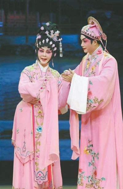 圖為梁素梅(左)正在演出傳統(tǒng)粵劇劇目《繡襦記》。梁素梅供圖