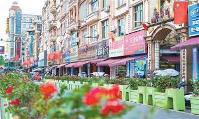 晚上8時(shí),東興浪淘沙·二橋里旅游文化街夜市燈火燦爛,燒烤攤“嗞啦”作響,水果鋪香氣四溢,這里是中越邊民和游客休閑好去處。