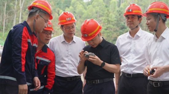 在由廣西地礦建設(shè)集團(tuán)主導(dǎo)推進(jìn)的自治區(qū)重點(diǎn)建設(shè)項(xiàng)目大新縣弄屯鉛鋅礦項(xiàng)目施工現(xiàn)場,黎四龍?jiān)敿?xì)聽取了項(xiàng)目負(fù)責(zé)人關(guān)于項(xiàng)目推進(jìn)情況的匯報(bào),包括工程進(jìn)度、綠色礦山建設(shè)、資源開采規(guī)劃等內(nèi)容。針對(duì)施工中遇到的地質(zhì)結(jié)構(gòu)復(fù)雜、設(shè)備調(diào)度困難等問題,黎四龍與項(xiàng)目團(tuán)隊(duì)共同分析探討,提出了具體的解決方案和優(yōu)化建議。在掘進(jìn)巷道中,黎四龍仔細(xì)檢查了巷道支護(hù)強(qiáng)度、通風(fēng)排水系統(tǒng)運(yùn)行情況、安全警示標(biāo)識(shí)設(shè)置以及開采作業(yè)規(guī)范執(zhí)行等情況。黎四龍強(qiáng)調(diào),安全是礦山生產(chǎn)的生命線,要時(shí)刻繃緊安全這根弦,加強(qiáng)隱患排查治理,完善應(yīng)急處置機(jī)制,堅(jiān)決杜絕安全事故發(fā)生。同時(shí),要高度重視綠色礦山建設(shè),嚴(yán)格遵循“綠水青山就是金山銀山”的理念,要采用先進(jìn)的開采技術(shù)和環(huán)保工藝,實(shí)現(xiàn)資源開發(fā)與生態(tài)保護(hù)的協(xié)調(diào)發(fā)展,讓礦山在開發(fā)中得到保護(hù),在保護(hù)中實(shí)現(xiàn)可持續(xù)開發(fā)。