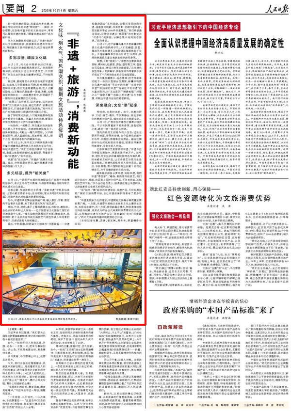 “非遺是民族文化的瑰寶,非遺賦能文旅融合高質(zhì)量發(fā)展前景廣闊。一方面,非遺要與其賴以生存的文化土壤共生共存,實(shí)現(xiàn)活態(tài)保護(hù);另一方面,要?jiǎng)?chuàng)新融合模式,特別是借助現(xiàn)代科技與創(chuàng)意,使其成為符合當(dāng)代審美和消費(fèi)需求的文化產(chǎn)品,從而推動非遺與文旅產(chǎn)業(yè)從‘簡單疊加’走向‘深度融合’?!蔽鞅贝髮W(xué)新聞傳播學(xué)院教授楊立川說。(本報(bào)記者馬晨、蘇濱、張?jiān)坪印①Z豐豐、李亞楠參與采寫)