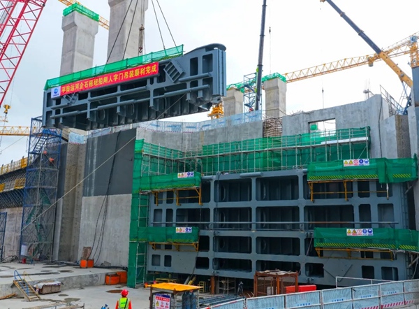 平陸運(yùn)河企石樞紐船閘人字門順利吊裝完成