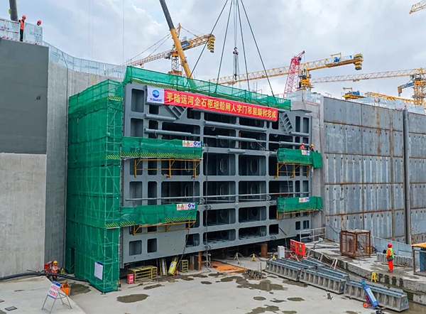 平陸運(yùn)河企石樞紐人字門吊裝完成
