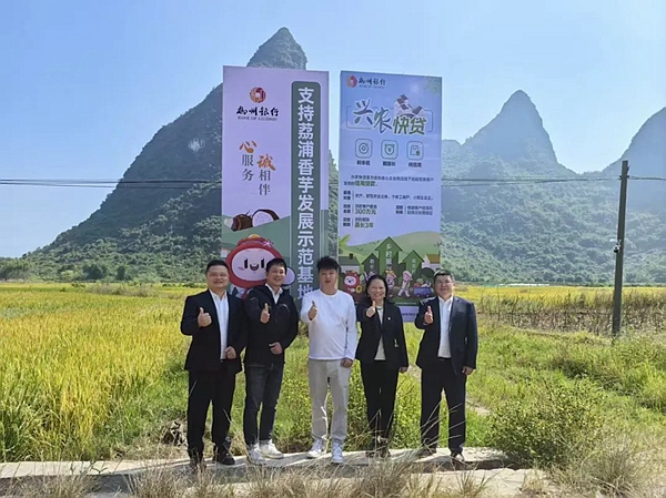 金“芋”良緣,振興鄉(xiāng)村。10月28日,柳州銀行與荔浦某農(nóng)業(yè)公司在荔城鎮(zhèn)五里芋頭種植基地舉辦合作交流活動,并共同為“柳州銀行支持荔浦香芋發(fā)展示范基地”揭牌。