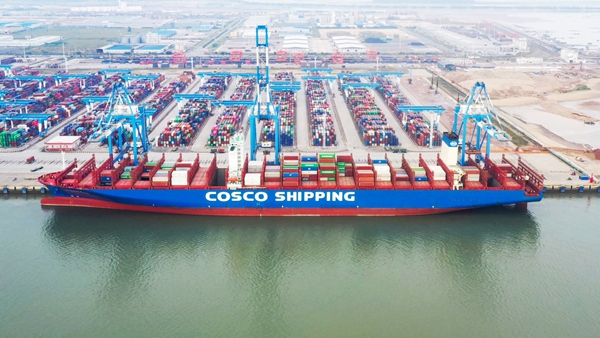 據(jù)了解,受蘇伊士運(yùn)河通航標(biāo)準(zhǔn)限制,目前全球最大的集裝箱船舶長(zhǎng)度均不超過400米?!爸泻L窖蟆陛喿?cè)船籍港為香港,船長(zhǎng)399.67米、船寬58.6米,載重噸達(dá)184320噸,設(shè)計(jì)裝載量19100標(biāo)箱,主要服務(wù)于歐亞航線,是名副其實(shí)的海上“巨無霸”與“帶貨王”。