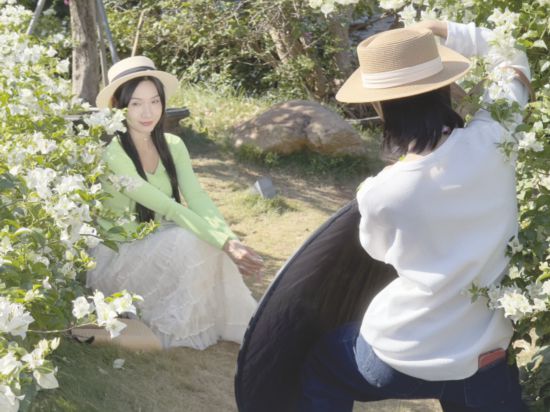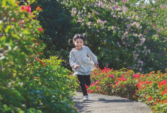 “飽覽絢爛秋色,感受葉子花怒放的活力?!庇慰土峙空f,站在葉子花園觀景臺飽覽整個花谷的美景,遠處還有藍白色調(diào)的大風(fēng)車映襯,超級出片。