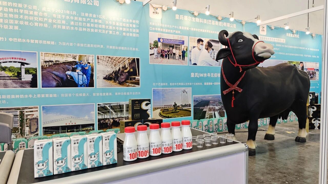 在D14區(qū)的種業(yè)展館,皇氏賽爾通過展板和視頻,系統(tǒng)展示了公司在巴基斯坦建立的無疫種源牧場和胚胎實(shí)驗(yàn)室,以及在廣西建立的規(guī)模化繁育基地等一系列成果。作為國內(nèi)首個(gè)獲準(zhǔn)從巴基斯坦引進(jìn)水牛遺傳物質(zhì)的奶水牛育種企業(yè),公司已成功實(shí)現(xiàn)多批優(yōu)質(zhì)胚胎的引進(jìn),并通過胚胎移植技術(shù)培育出純種巴基斯坦尼里拉菲犢牛。
